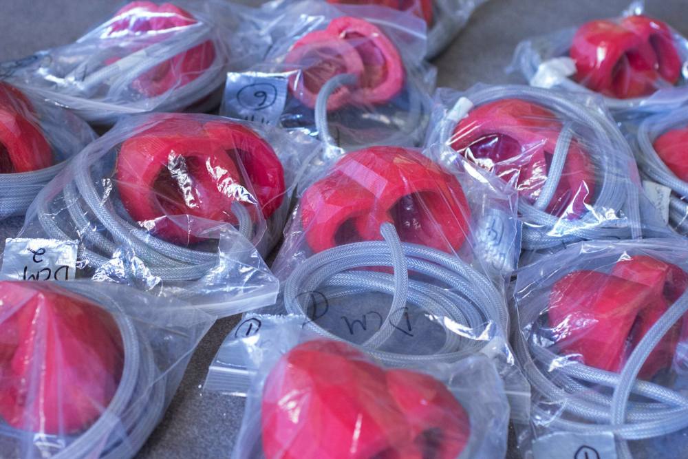 Experiments were carried out with various materials, actuators and mechanisms to find the technology that best represent the visual and tactile behaviours of a heart muscle as it beats. Air muscles were choosen, with an array of them being cast into a silicone multi chambered heart.