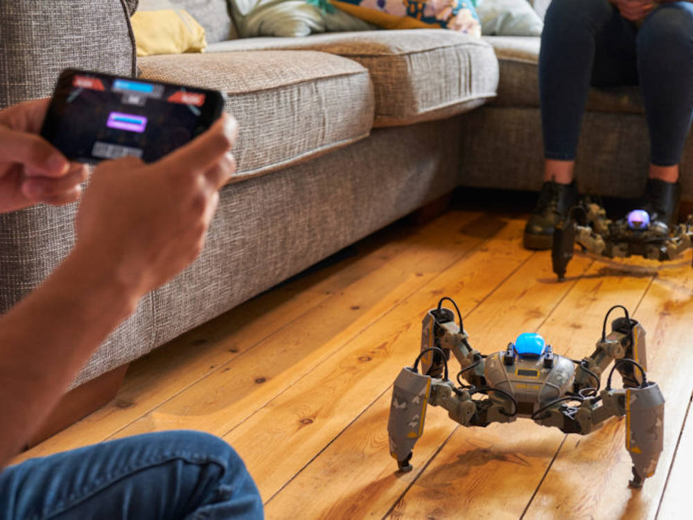 MekaMon is the worlds first AR Gaming Robot. A quadruped robot designed to be controlled from an App on a mobile phone and to battle other MekaMon in the real world or in cyberspace.